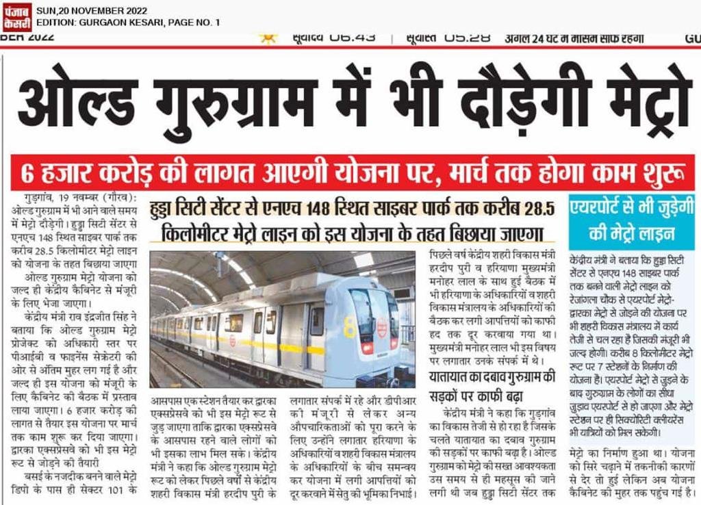 He said that connecting the people of Old Gurugram with the Metro network will prove to be a milestone in public transport.