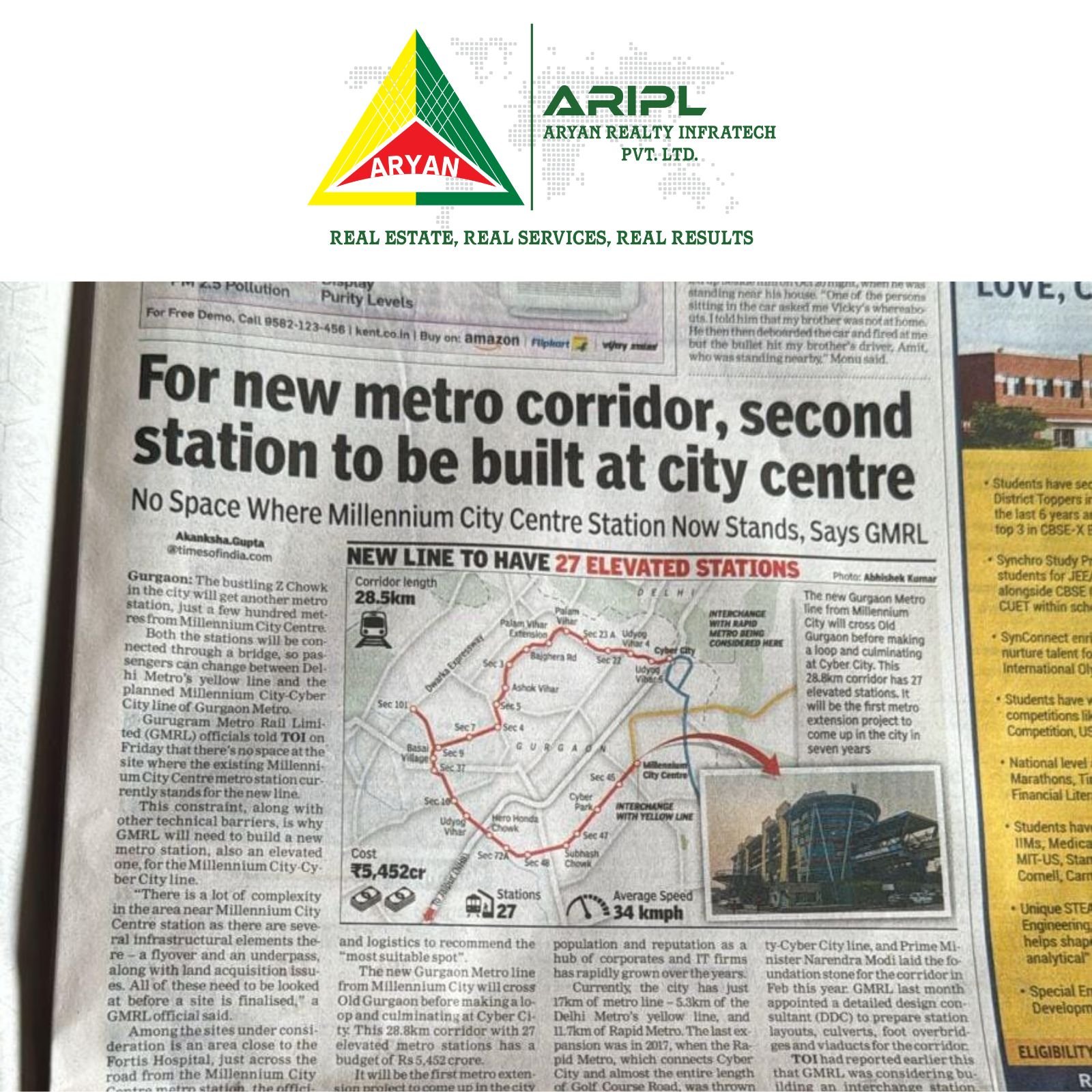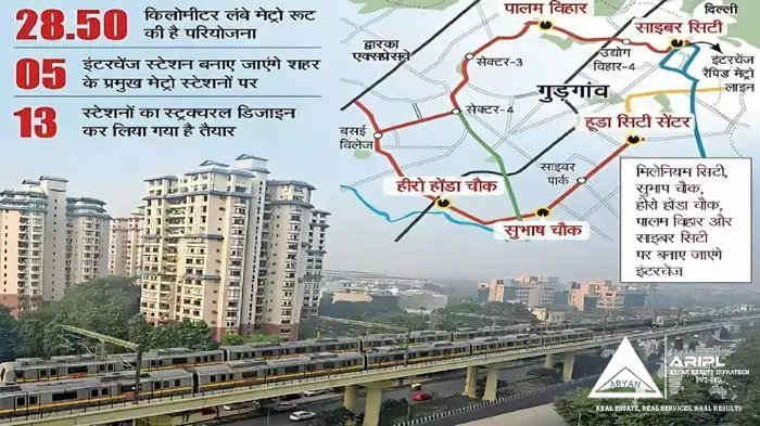 "On the 28.5 km long Metro route from Millennium City Centre to Cyber Park, about 27 stations like Sector 45, Subhash Chowk, Hero Honda Chowk, Sector 37, Sector 10, Basai, Sector 4, Rejangla Chowk, Palam Vihar, Sector 23, etc, will be constructed," he said.