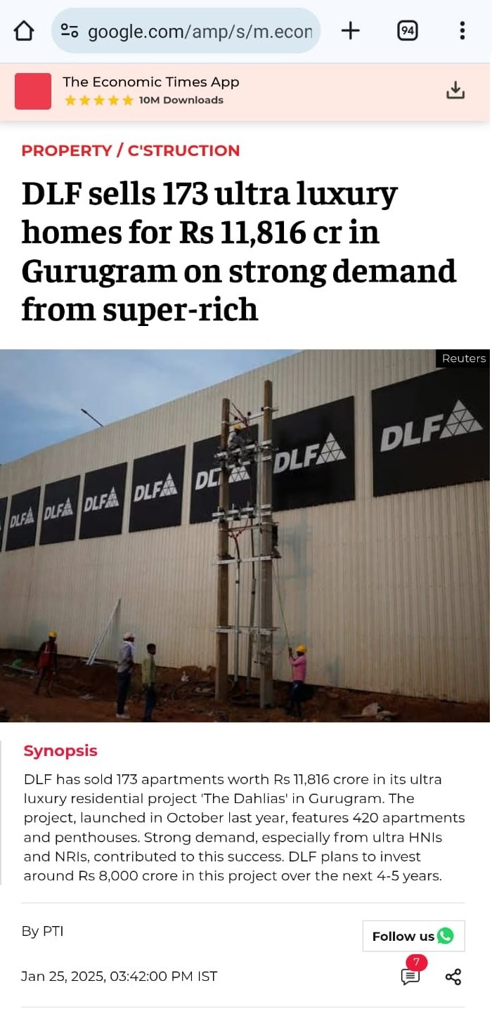 DLF's subsidiary DLF Home Developers Joint Managing Director Aakash Ohri attributed the record sales to high demand from ultra HNIs from across India as well as non-resident Indians (NRIs).