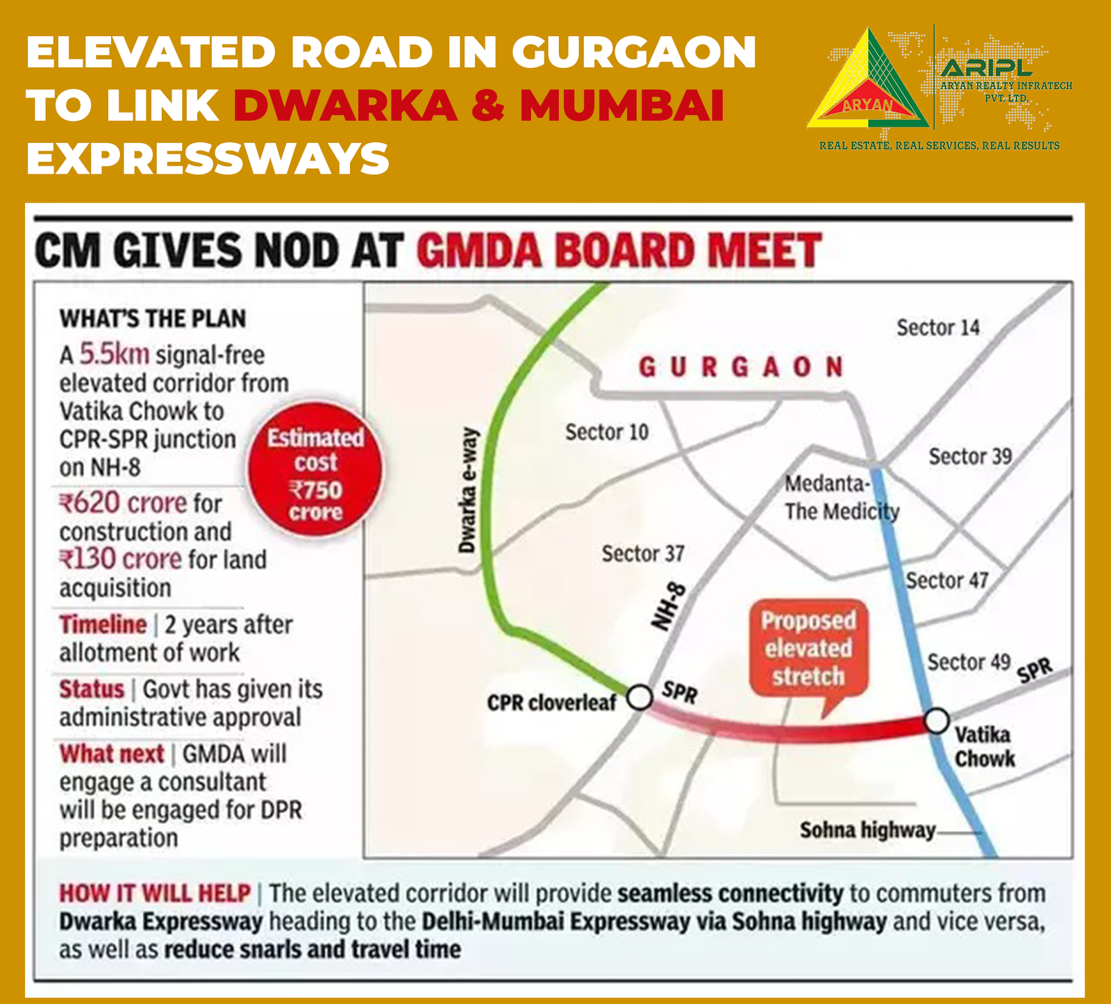 जीएमडीए की रोड पर 750 करोड़ रुपये से एलिवेटिड रोड बनाने की योजना है। मुख्यमंत्री नायब सिंह सैनी की तरफ से पिछले कार्यकाल के दौरान इस इस्टीमेट को मंजूरी प्रदान की जा चुकी है। एलिवेटिड रोड के बनने के पश्चात द्वारका एक्सप्रेसव वे, गुरुग्राम-सोहना हाइवे, दिल्ली-जयपुर एक्सप्रेस वे और गोल्फ कोर्स एक्सटेंशन रोड क्लोवरलीफ के माध्यम से आपस में जुड़ जाएंगे, जिससे वाहन चालकों को आवागमन में राहत मिल जाएगी। पांच मिनट के इस रास्ते को तय करने में 40 मिनट समय नहीं लगेगा।