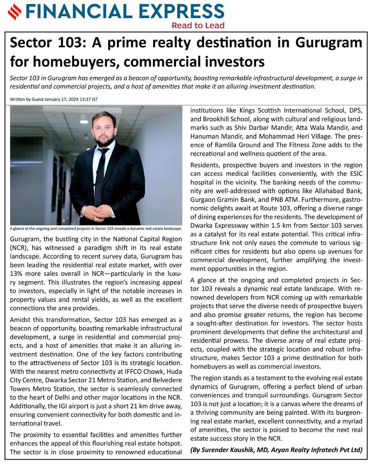 Aryan Realty is dedicated to providing unparalleled customer experiences, from pre-sale guidance to post-sale services. We are committed to the fulfilment of promises, the use of advanced technologies for quick response, and personalized services to provide our customers with the best in the industry. Our personalized portfolio management, market research, and excellent post-sales services have been the main factors for our rapid rise in landscape," says Managing Director and Founder, Aryan Realty Infratech Pvt. Ltd.