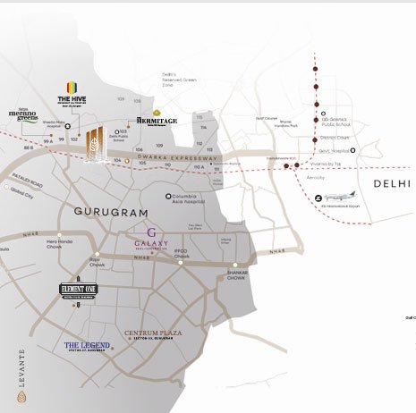 Satya Levante Residences Strategically located in Sector 104, just 4 minutes from Dwarka Expressway, with easy access to Pataudi Road, NH8, Southern Peripheral Road, the upcoming Sector 101 Metro, and IGI Airport (under 25 minutes).