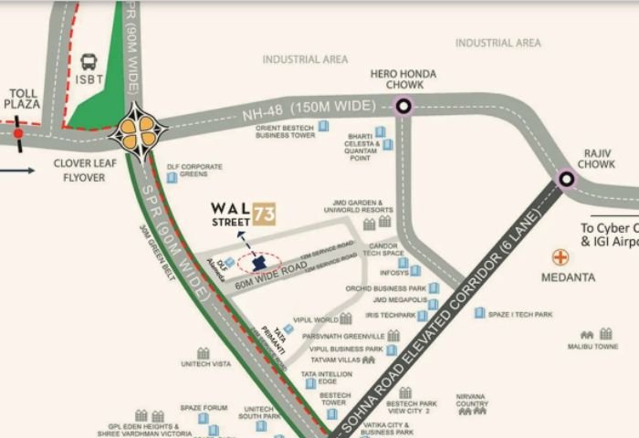 Wal Street 73 Commercial And Two Side Open SCO Plots, Ranging From 115-298 Sq Yards Developed On 2.825 Acres Of Land Located In Sector 73 On SPR In Gurgaon.